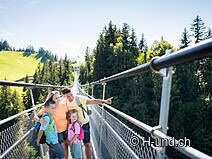 Vivete un'esperienza a tutto tondo con tutta la famiglia. La cabinovia girevole vi porta direttamente all'area avventura in soli otto minuti. Direttamente alla stazione a monte, a 1200 metri di altitudine, un enorme castello gonfiabile, una tortuosa pista estiva per slittini e una pista per tubing attendono grandi e piccini in estate. Un'attrazione è il ponte sospeso pedonale "Skywalk", lungo 374 metri, che attraversa il Lauitobel a circa 58 metri di altezza. Poiché i cani non amano le griglie del pavimento, alla stazione a monte è possibile noleggiare dei fringuelli per cani. Chi preferisce un ritmo più tranquillo può percorrere uno dei cinque sentieri circolari che passano accanto a ristoranti accoglienti e sono sempre accompagnati da splendide viste panoramiche sulle Alpi circostanti.